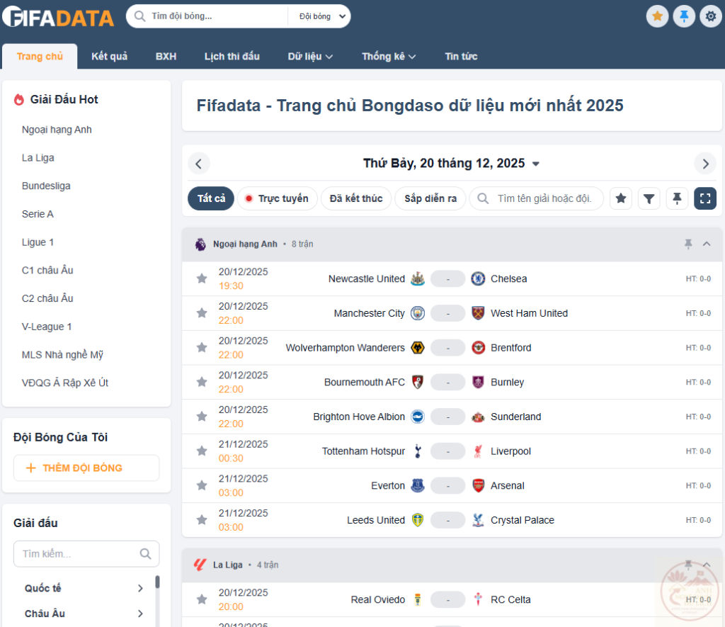 Fifadata – Trang bongdaso – Dữ liệu bóng đá số mới nhất