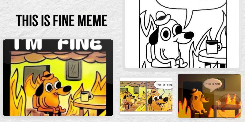 This Is Fine meme lấy từ hai khung tranh đầu của loạt truyện tranh On Fire. Nhân vật chính là một chú chó nhỏ, dáng vẻ hiền lành, ngồi trên bàn với tách cà phê, miệng mỉm cười và nói “This is fine” dù ngọn lửa bao trùm căn phòng.